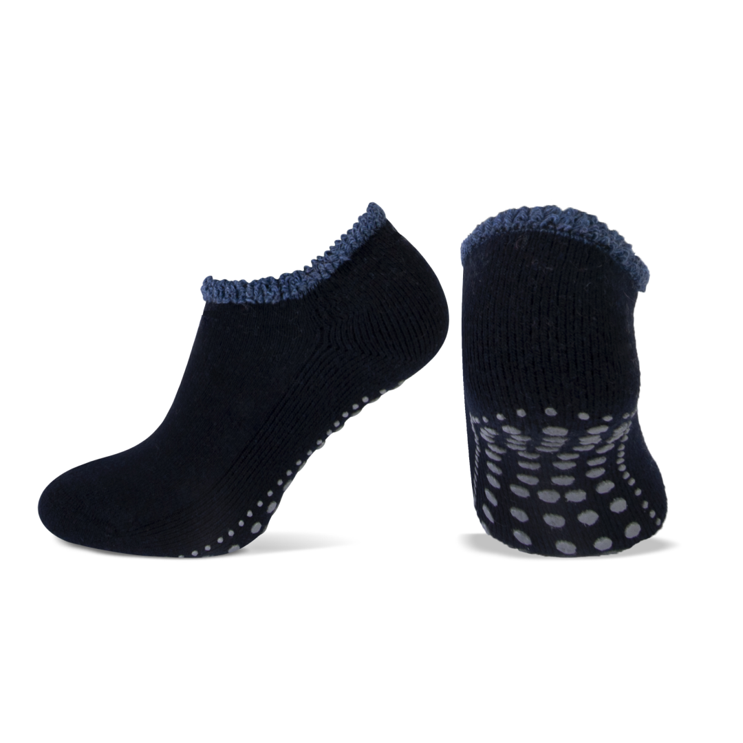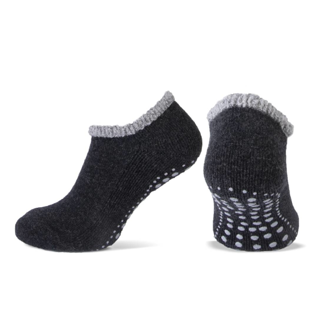 Wil je wel warme voeten in huis maar niet een hele sok tot over je enkels? Deze huissokken zijn gemaakt van kwaliteits wol en houden de voeten heerlijk warm. Door het lage model zitten deze sokken tot onder de enkels waardoor ze eigenlijk als sloffen aanvoelen. Op de zool zijn speciale siliconen pads aangebracht om uitglijden te voorkomen. De sokken zijn heerlijk zacht en soepel, echt een aanrader!