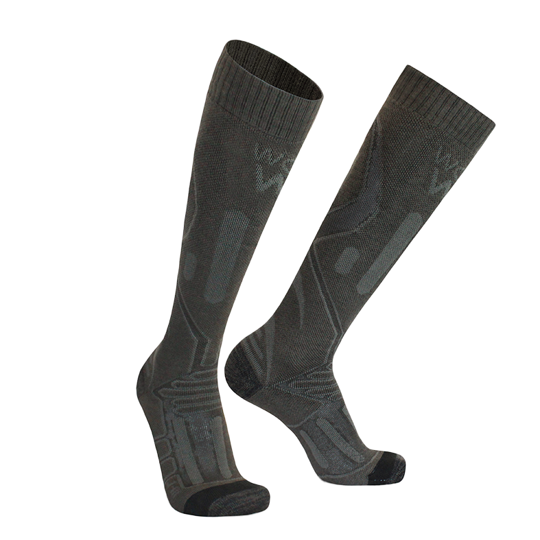 Maak kennis met de Merino Heavy Kniekousen. Dit is niet zomaar een sok; dit is de enige op de markt met 40% Merino wol en Teflon-behandeling. Nooit meer natte of koude voeten, zelfs niet in extreme omstandigheden. Door de supersterke en ademende stof voel je je altijd fris en droog.